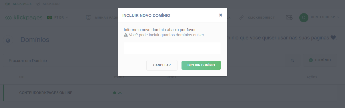 Como usar seu domínio próprio nas páginas criadas com o Klickpages.